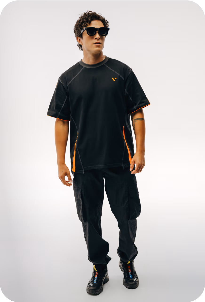 Bold orange panels meet breathable, durable fabric. Lightweight yet rugged, this tee transitions seamlessly from urban streets to trailheads—future - ready comfort, redefined.